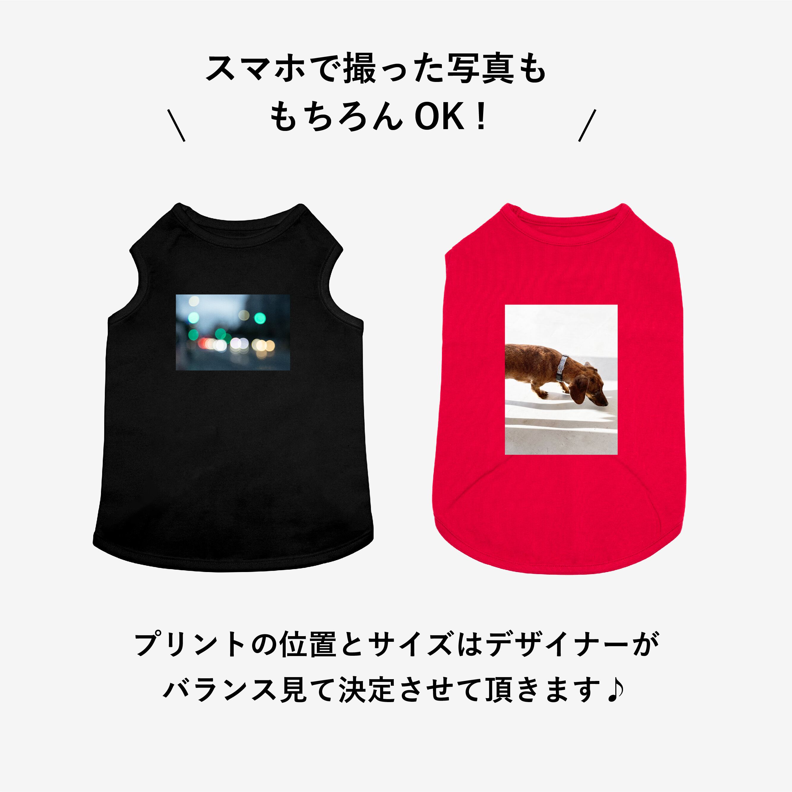 カメラやスマホで撮影したお気に入りの写真をプリントしてみませんか? 犬服の種類を選びサイズと色を選択し注文をする。 注文後に[email protected]に写真をメールするだけです。